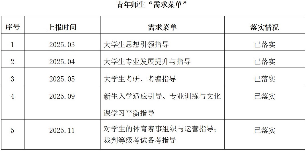 体育学院2025年青年师生“需求菜单”和校内外老同志“资源菜单”情况统计表