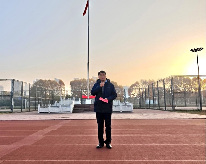 伴随着雄壮激昂的《义勇军进行曲》,五星红旗冉冉升起、迎风招展。全体师生肃立注目,高唱国歌,眼神中饱含对伟大祖国的崇敬与热爱。
