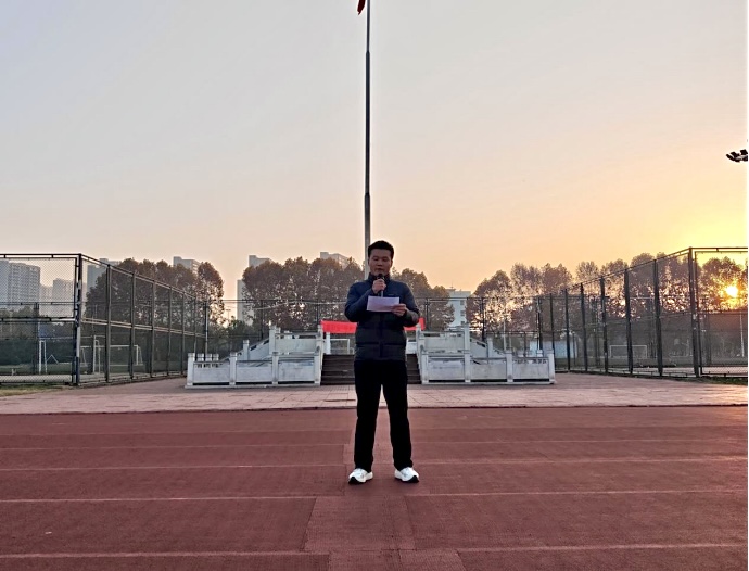 晨曦微露,国旗飘扬。为厚植师生爱国情怀,传承中华体育精神,凝聚体育强国建设力量,11月24日清晨 7 时 05 分,体育学院在田径场举行主题升旗仪式。体育学院党委书记陆林召,党委副书记周翔,辅导员、班主任以及大一大二全体学生参加,升旗仪式由周翔主持。