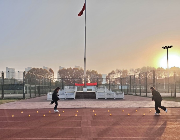 仪式最后进行了精彩纷呈的体育节目表演。刀剑刚劲有力,一招一式尽显中华武术的博大精深;八段锦行云流水,展现出传统体育的养生智慧与和谐之美;轮滑灵动飘逸,在赛道上穿梭跳跃,展现出青春的活力与激情。整场表演将体育技能与精神内涵完美融合,赢得现场师生阵阵掌声。