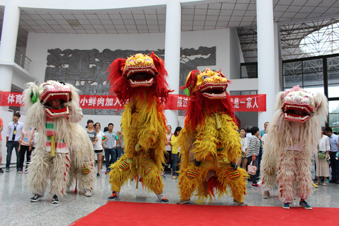 欢腾的锣鼓敲起来,敲出满腔的喜悦。胡从义等同学更是用气势恢宏地舞狮表演将现场氛围推上了最高潮。跳动的旋律能够让我们感受到青春这颗激情澎湃的心脏和动感节拍,14级姜志康、闫宇带来的有氧舞蹈更是让新生们感受到独属于体院的青春朝气。最后,校园十佳歌手之一的石浩天更是通过音乐来表达出学长学姐对学弟学妹们的欢迎。